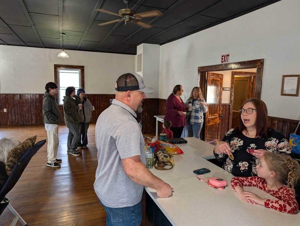 We meet at 18600 Illinois Avenue, Eminence, Missouri 65466, welcoming neighbors from nearby towns to share in worship and community meals